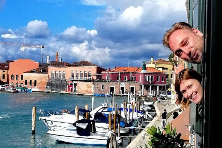 From the market, you’ll cross the Grand Canal the local way — on a traditional gondola ferry — then walk through quiet backstreets to reach the Fondamente Nove. A short vaporetto ride brings you to Murano, where your host’s home and kitchen await.