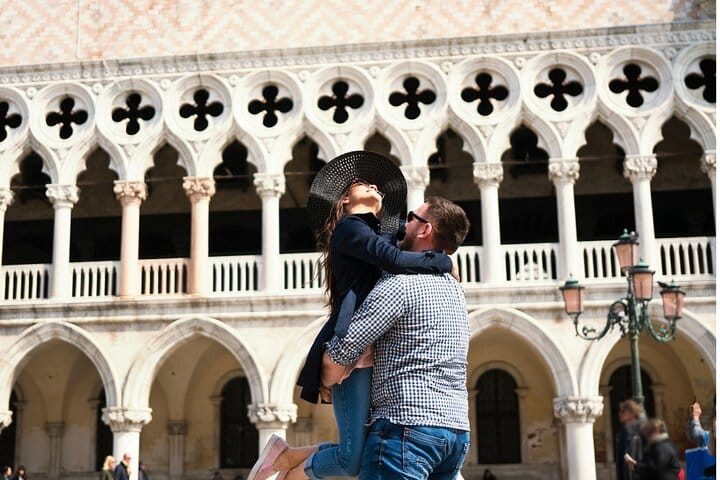 We’ll choose the best location together: a romantic canal bridge, a hidden courtyard, a panoramic rooftop, or even a private boat ride.